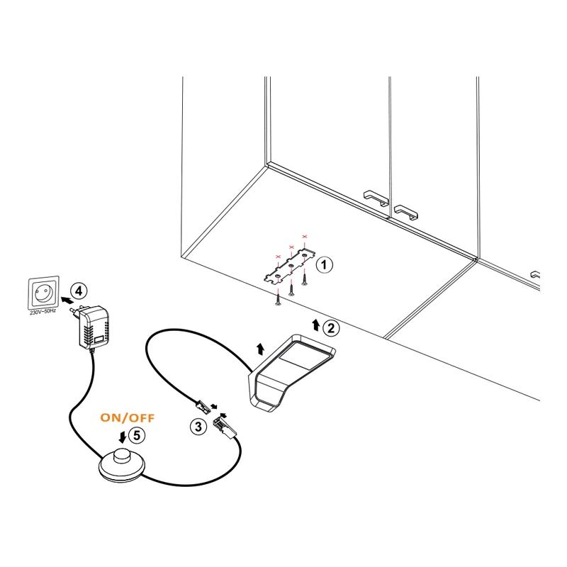 System sterowania opiera się na zewnętrznym włączniku nożnym lub nablatowym, dzięki czemu można wygodnie włączać oświetlenie bez dotykania lampy. Lampę można także podłączyć do LENA II USB, który umożliwia połączenie kilku opraw w jeden system i pozwala sterować wszystkimi podłączonymi lampami jednocześnie za pomocą jednego włącznika.