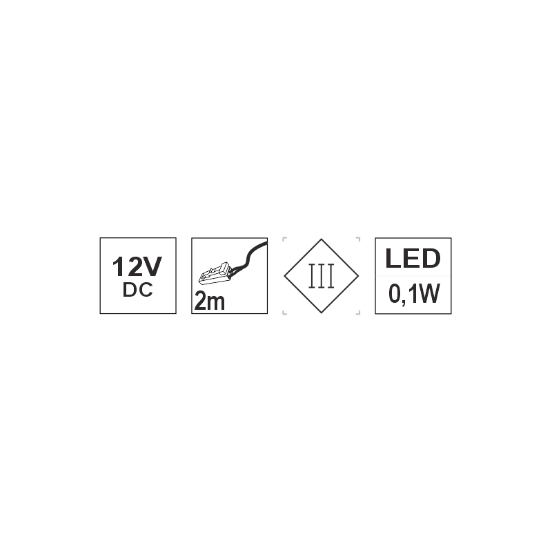 Cable: 2 m, Power: 0.1 W, Power supply: 12 V DC, Protection class: III