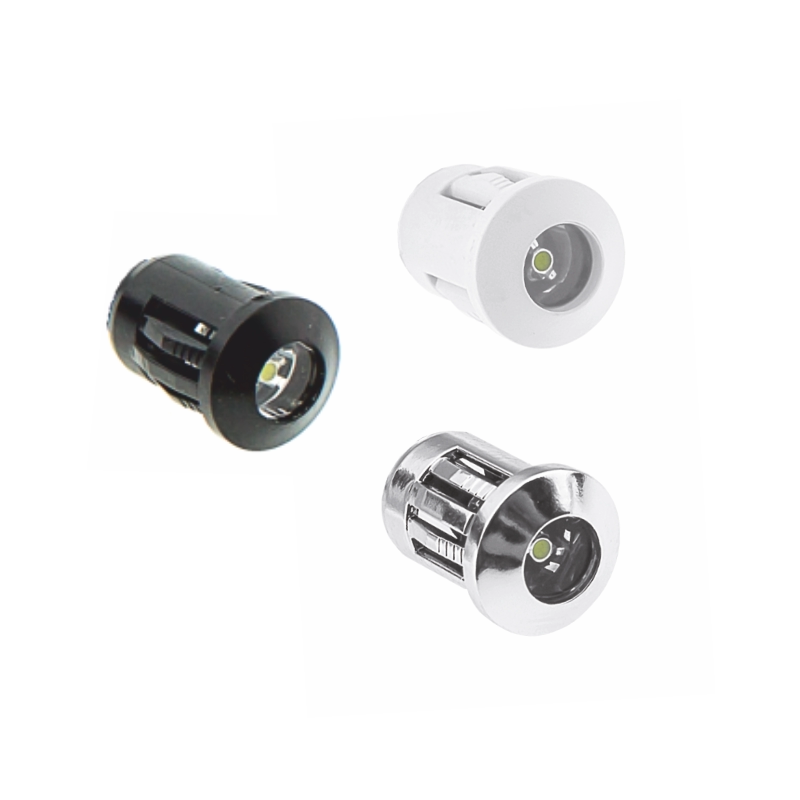 Recessed mounting allows the lamp to be fitted into a prepared hole, ensuring stable installation and a clean finish without protruding elements. The design works well in furniture boards, panels, and other decorative surfaces. The 0.1 W LED light source emits a focused beam, intended for creating lighting effects and subtle illumination of selected areas.