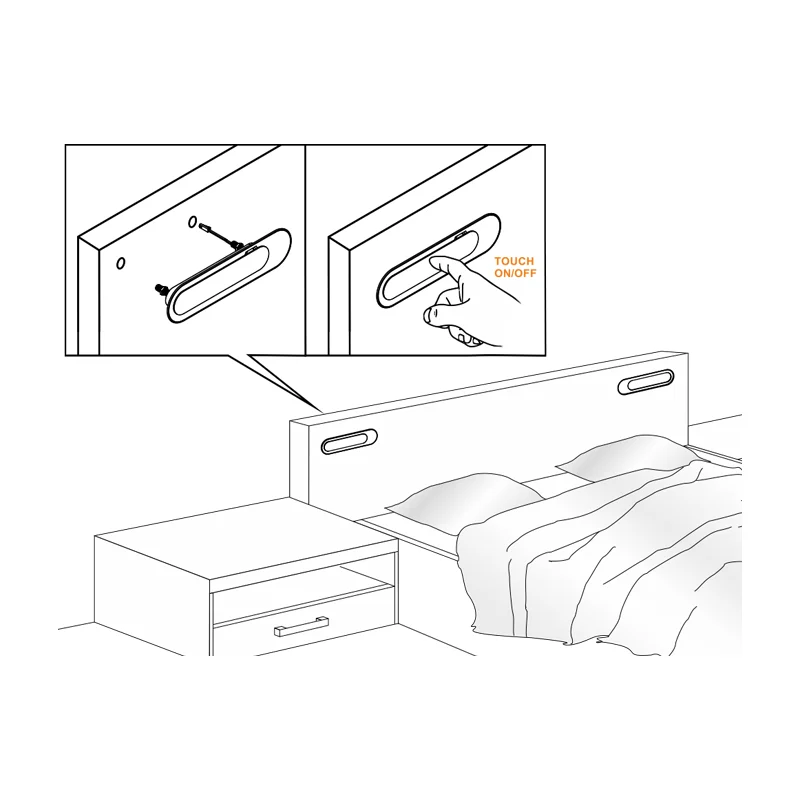 COMA to oprawa przeznaczona do montażu w zagłówkach łóżek oraz w zabudowie meblowej, gdzie pełni funkcję praktycznego oświetlenia strefy wypoczynkowej. Jej podłużny kształt oraz zintegrowana forma sprawiają, że stanowi spójny element mebla i zapewnia punktowe światło w miejscu, w którym jest ono najbardziej potrzebne. Doskonale sprawdza się w sypialniach, pokojach hotelowych oraz kamperach, gdzie istotny jest komfort użytkowania i łatwy dostęp do światła. Model COMA jest wyposażony w wyłącznik dotykowy, który umożliwia szybkie sterowanie oświetleniem.