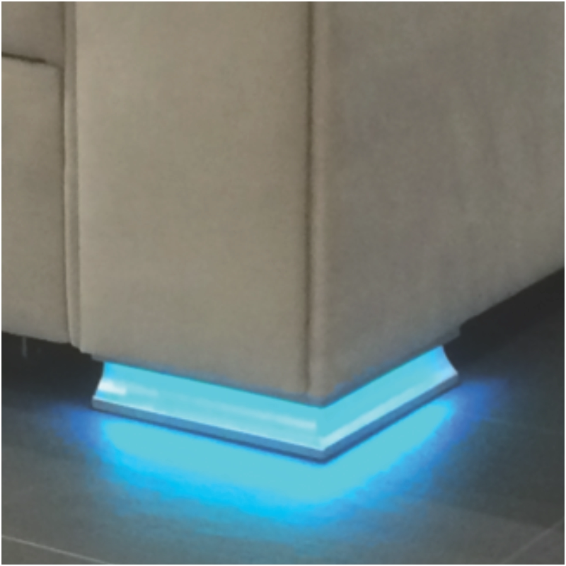 LEG HC przeznaczona jest do montażu w narożnikach mebli, szczególnie w sofie, narożniku lub zabudowie tapicerowanej, gdzie istotne jest estetyczne wykończenie oraz dodatkowy efekt podświetlenia przy podłodze. Kompaktowa konstrukcja pozwala na wygodne zastosowanie w różnych projektach meblowych.