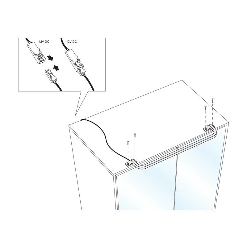 LAMPKA LED MIA to oświetlenie o charakterystycznym, wygiętym kształcie, montowane bezpośrednio na górnej powierzchni szafki łazienkowej za pomocą dwóch stabilnych punktów mocowania. Jej podłużna, wygięta konstrukcja sprawia, że światło oświetla całą taflę lustra, co ułatwia codzienną, poranną lub wieczorną, pielęgnację. Dzięki dwóm punktom podparcia lampka stabilnie przylega do szafki, a jej smukły profil nie dominuje nad otoczeniem, lecz harmonijnie dopełnia całą zabudowę.